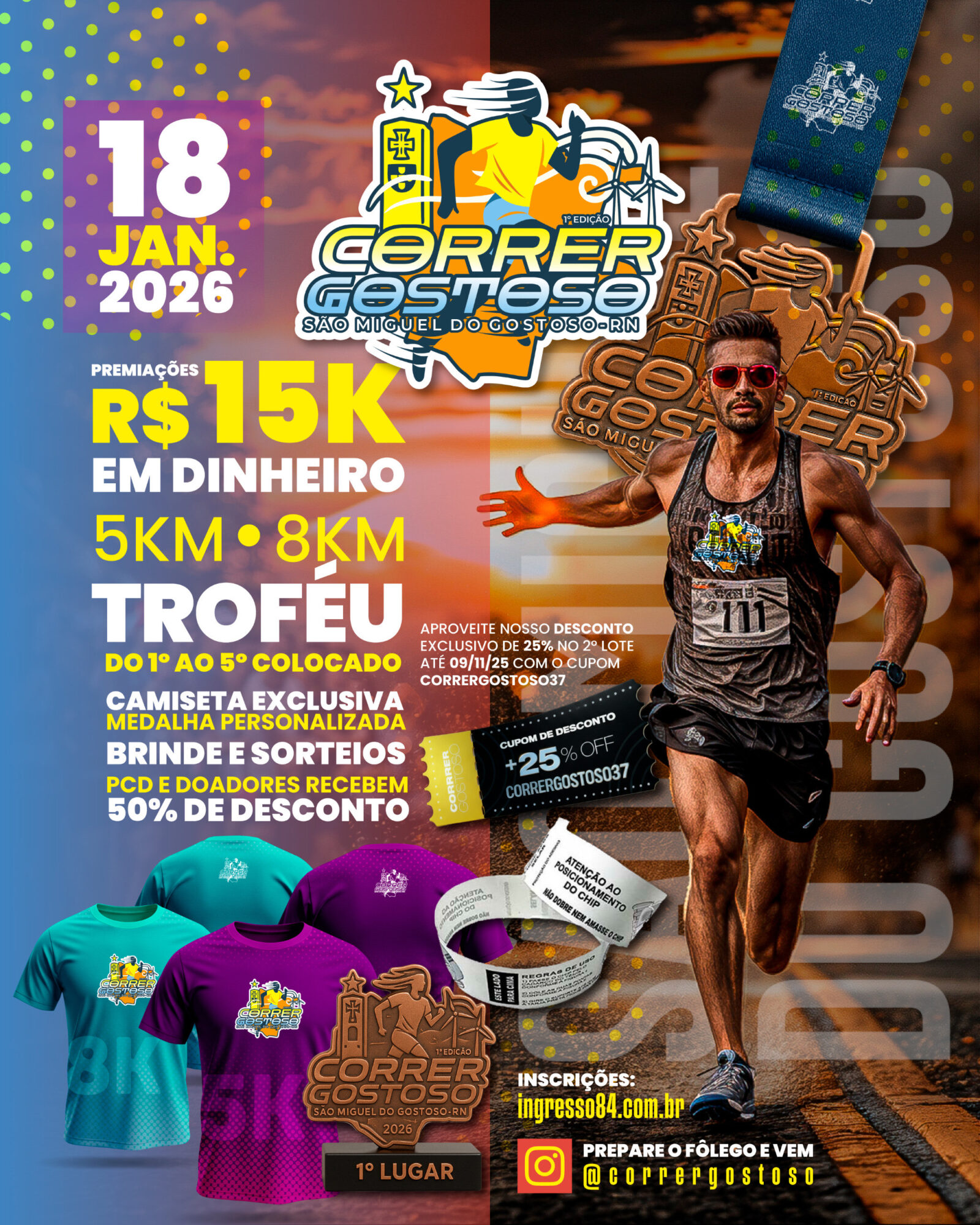 Local: São Miguel do Gostoso – RN / Data: 18 de janeiro de 2026 / Distâncias: 5 km e 8 km